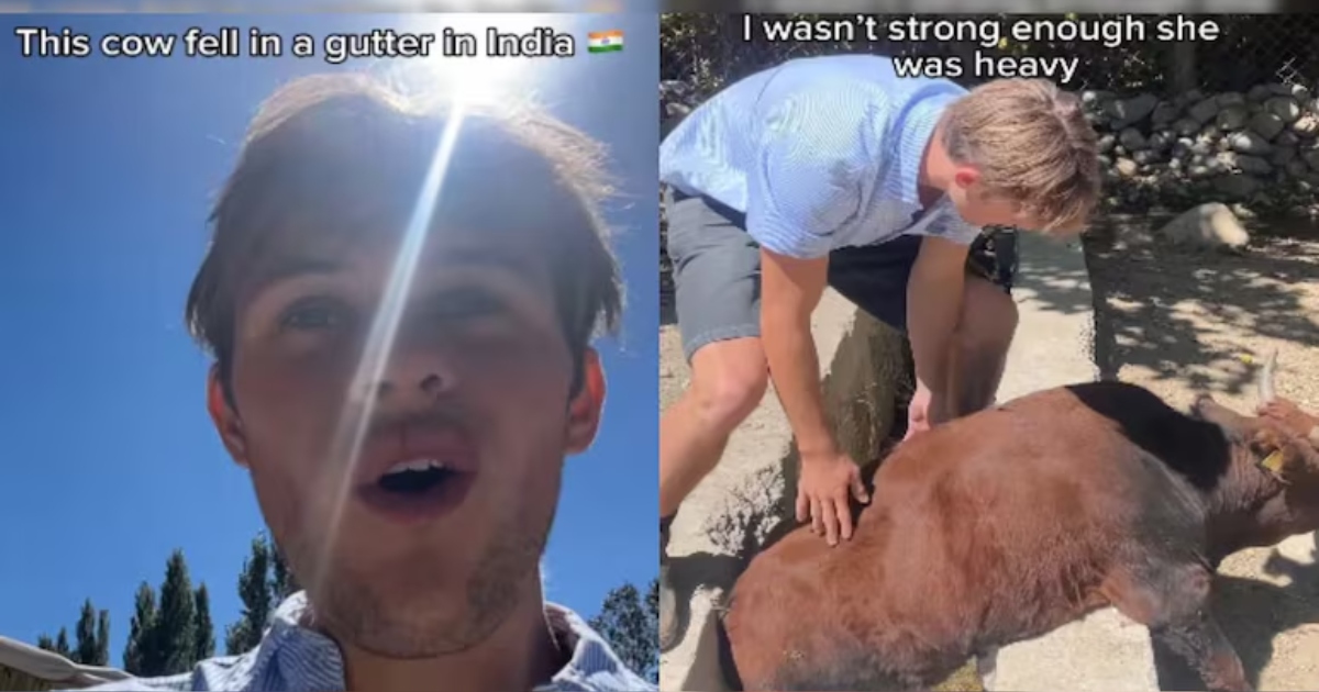 পথ চলতে গিয়ে ভারতের পরিত্যক্ত এক নর্দমায় পড়ে যায় একটি গরু। প্রাণীটির পেছনের দুই পাসহ শরীরের অর্ধেক অংশ ছিল ছিল নর্দমার ভেতরে। আর বাকি অর্ধেক অংশ নর্দমার বাইরে।