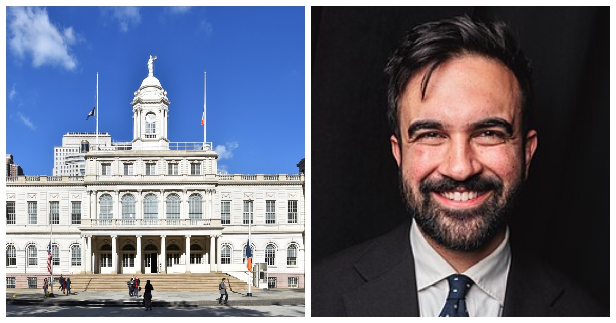 মেয়র পদে অভিষেক অনুষ্ঠানের জন্য নির্ধারিত স্থান সিটি হলের চিত্র ও জোরনা মামদানি। ছবি: উইকিমিডিয়া কমন্স