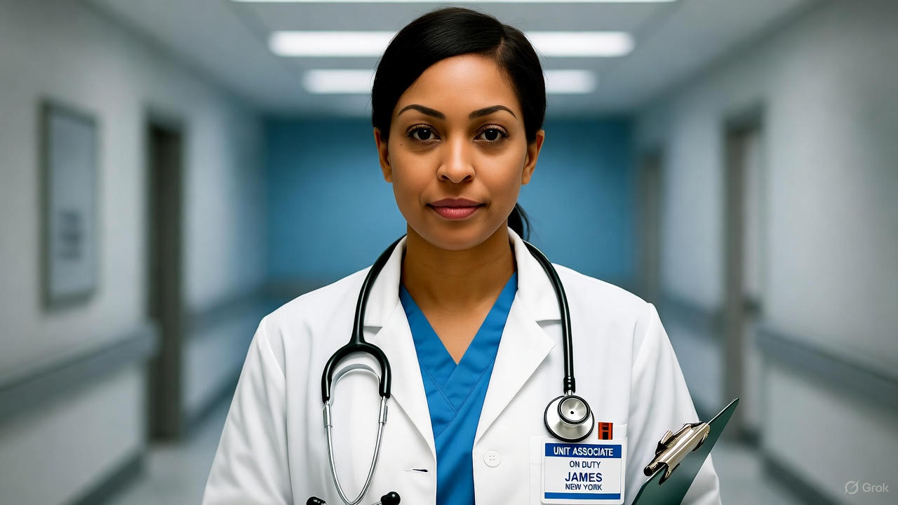 নিউ ইয়র্কের হাসপাতালে কর্মরত ইউনিট অ্যাসোসিয়েট নারীর এআই নির্মিত প্রতীকী চিত্র। ছবি: গ্রোক