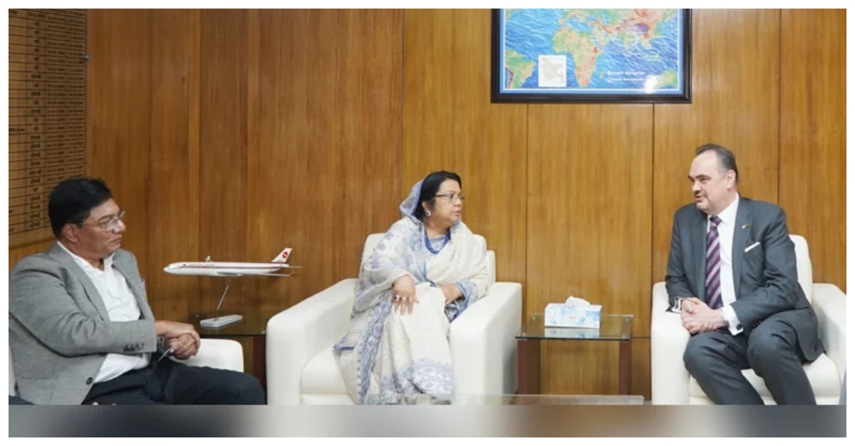 বেসামরিক বিমান পরিবহন ও পর্যটন মন্ত্রী আফরোজা খানমের সঙ্গে মঙ্গলবার বাংলাদেশে নিযুক্ত মার্কিন রাষ্ট্রদূত ব্রেন্ট টি. ক্রিস্টেনসেনের এক সৌজন্য সাক্ষাৎকারে এ আলোচনা হয়।