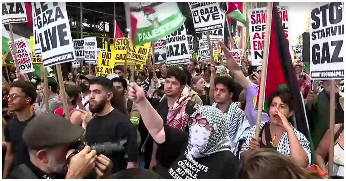 ফিলিস্তিনের গাজায় গণহত্যা বন্ধ করতে ইসরায়েলের প্রধানমন্ত্রী বেঞ্জামিন নেতানিয়াহুর প্রতি আহ্বান জানিয়ে শুক্রবার নিউ ইয়র্কের টাইমস স্কয়ারের কাছে যানবাহন আটকে বিক্ষোভ করেছেন হাজারো মানুষ।