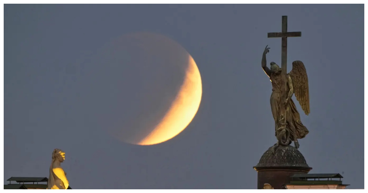 রাশিয়ার সেন্ট পিটার্সবার্গ থেকে তোলা ছবিতে চন্দ্রগ্রহণ।ডেনমার্কের কোএজে শহর থেকে সম্পূর্ণ চাঁদগ্রহণ এবং ব্লাড মুন দেখা গেছে।পাকিস্তানের রাওয়ালপিন্ডিতে একটি মসজিদের মিনারের ওপর থেকে আংশিক চন্দ্রগ্রহণের ছবি।গ্রিসের টিনোস দ্বীপের ভোলাক্স গ্রাম থেকে রক্তিম চাঁদ।মায়ানমারের নেপিডো থেকে তোলা ছবিতে চন্দ্রগ্রহণ।
